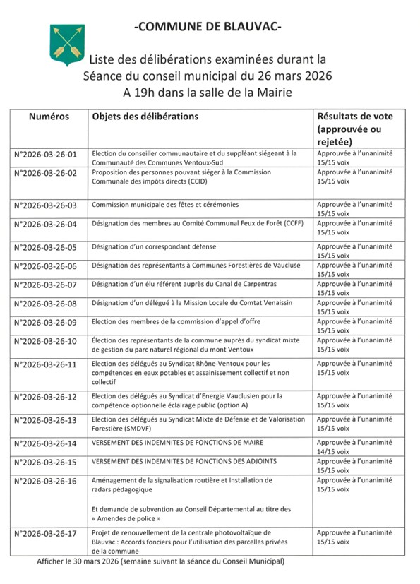 L’information du public sur la prévision de danger météorologique est assurée par une borne d’information téléphonique à partir de 17H ou sur le site internet de préfecture de Vaucluse.